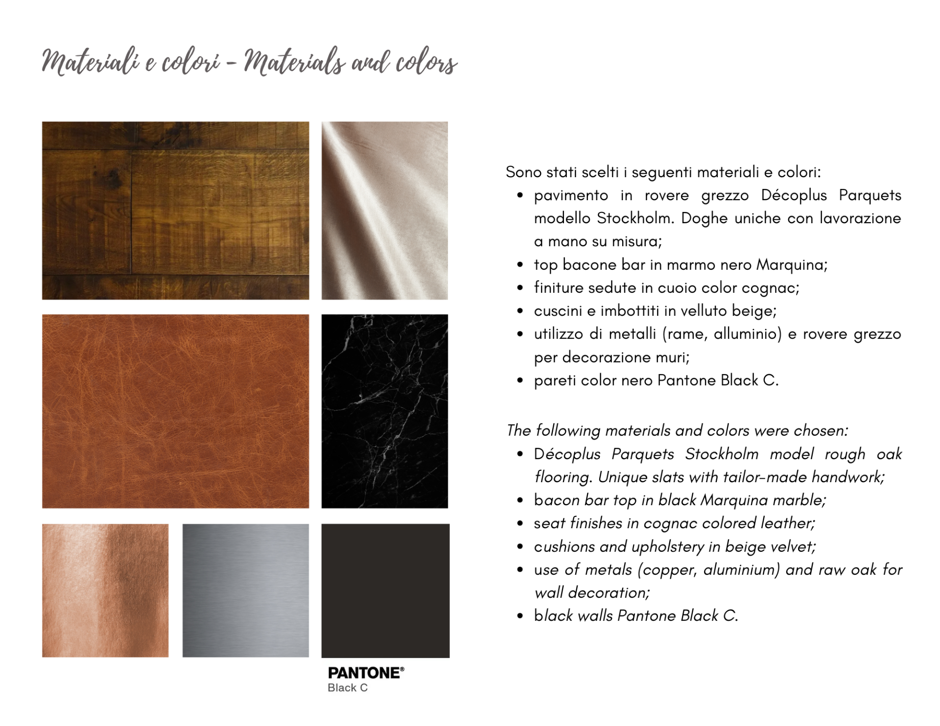 Un documento strutturato che definisce identità, atmosfera e funzionalità della struttura, trasformando il concept in scelte progettuali chiare e controllabili.